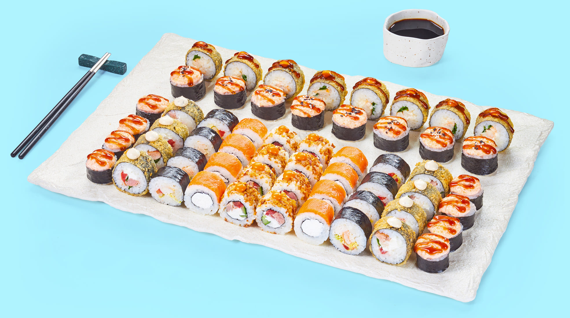 Состав: Ролл Бао (8 шт.), Ролл Филадельфия лайт (8 шт.), Цезарь ролл (8 шт.), Ролл Флай-скай (8 шт.), Ролл Южный (8 шт.), Ролл Сальвадор (8 шт.), Ролл Сакамото (8 шт.) *Не забудьте заказать имбирь, васаби и соевый соус. Они не входят в стоимость заказа. *Внешний вид блюда может отличаться от фото на сайте.