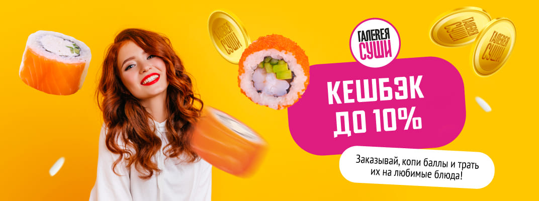 Теперь каждый заказ в Галерее Суши — это не только удовольствие, но и выгода! Да-да, у нас появилась бонусная программа с кешбэком до 10% ;)